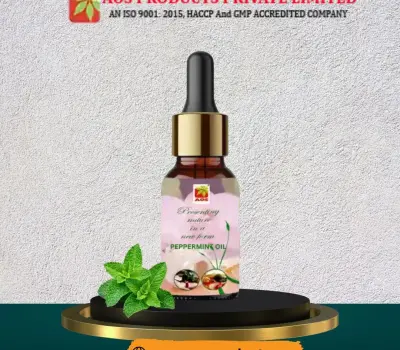 Peppermint oil, extracts from leaves or flowering part of mentha piperita through steam distillation used in aromatherapy used as fragrance in hygiene and cosmetics, as flavor in food items. Used as ingredient in analgesic balms for joint pain relief. Valued for its refreshing scent and health benefits, it has health benefits from aiding digestive issues to relieving headaches.
